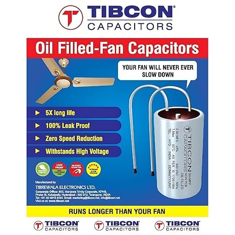 TIBCON CAPACITOR 2.50 MFD OIL FILLED 5x Long Life – Ceiling Fan capacitor – 440V OIL AL CAN (Pack of 4)